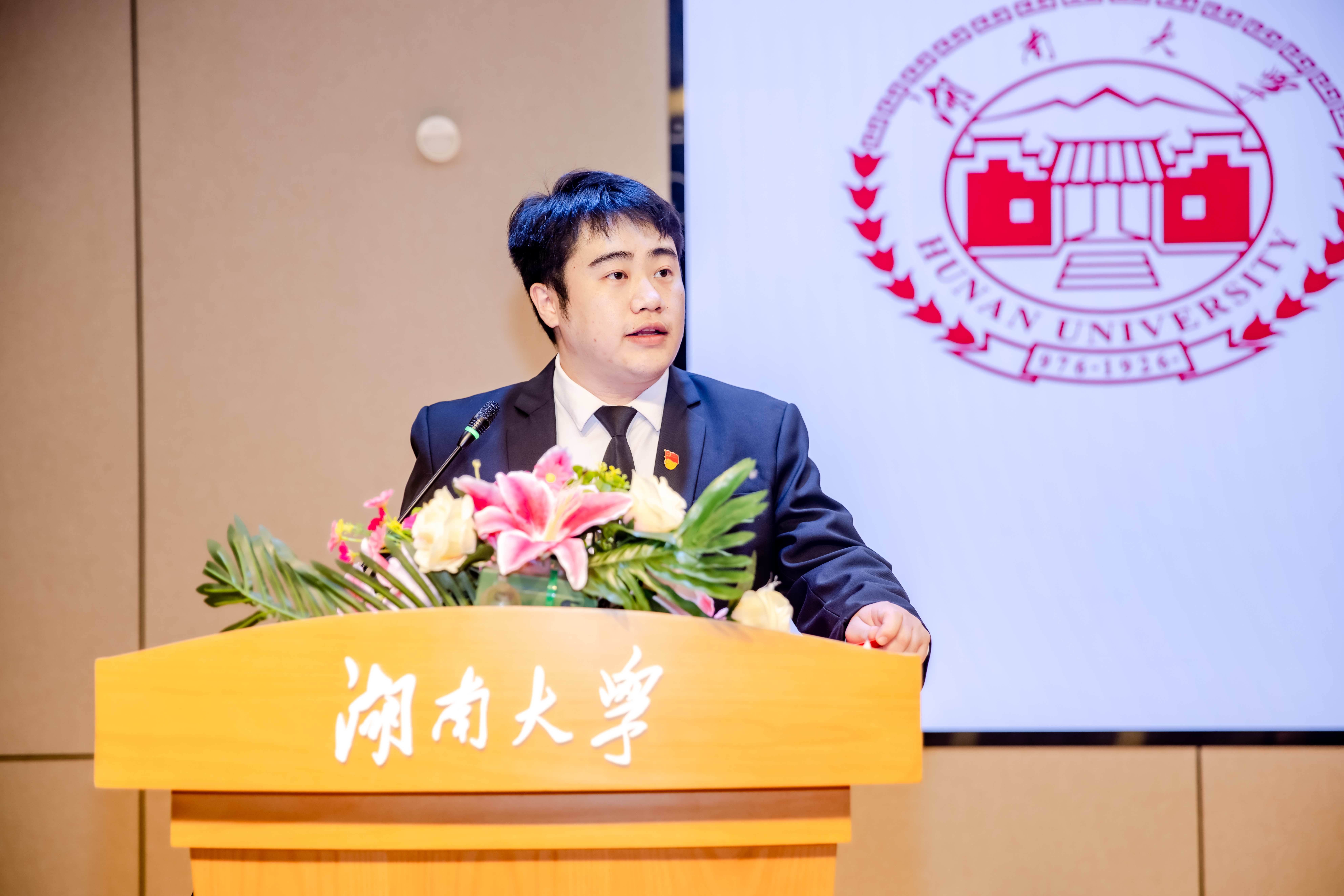 2011级金融专业校友、湖南微猴科技创始人刘叶焕以创业历程诠释追梦精神,分享4次失败后创办“微猴科技”的坚韧,捐设奖学金激励学子。他寄语湖大学子立大志、勇突破,用向上力量书写未来。