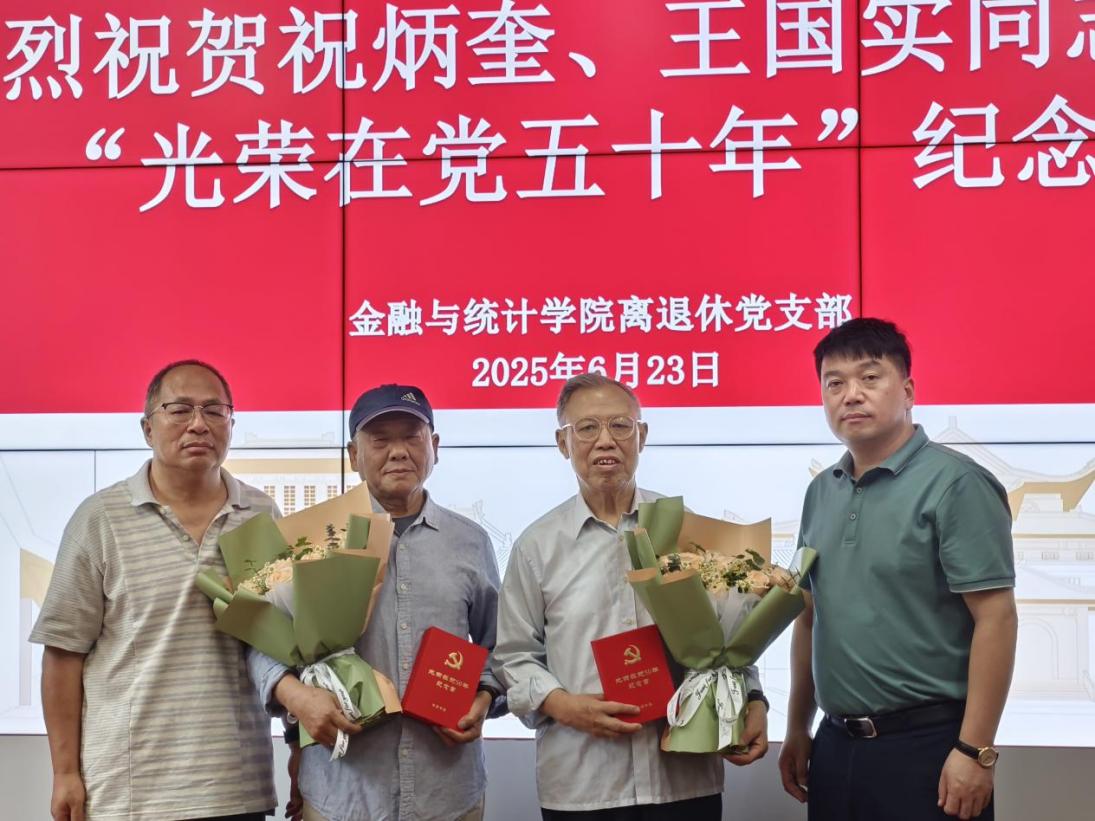 6月23日上午,情趣内衣 隆重举行“光荣在党50年”纪念章授予仪式。学院党委书记黄红立出席会议,离退休支部书记曹晓东主持会议,学院部分师生党员代表共同见证这一庄严而温暖的时刻。